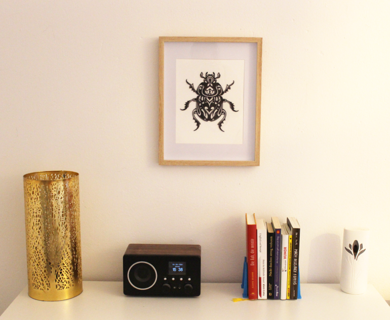 - Elegantes Design: Die künstlerische Darstellung des Käfers verleiht diesem Kunstwerk eine einzigartige und ansprechende Ästhetik.