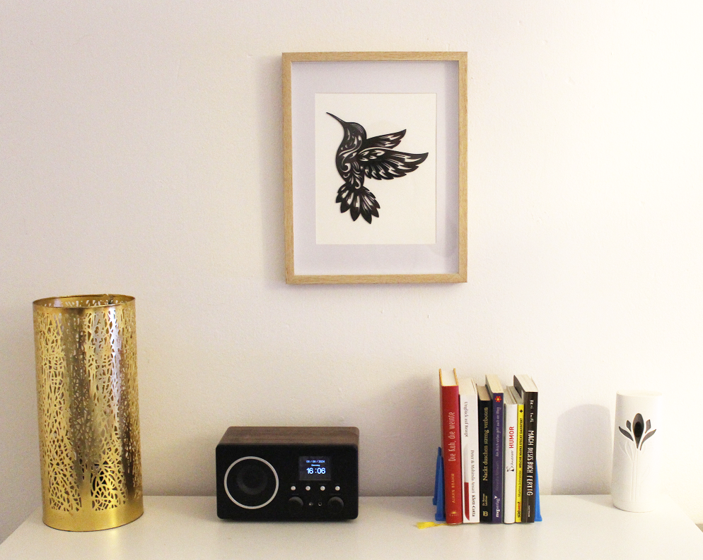 Bringen Sie die Leichtigkeit und Schönheit der Natur in Ihre Wohnräume mit unserem 3D-gedruckten Bild eines Kolibris. Dieses exquisite Kunstwerk, fängt die Anmut und Lebendigkeit dieses faszinierenden Vogels perfekt ein.